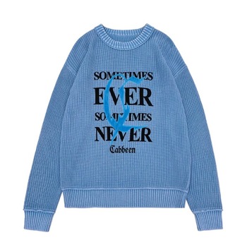 Logo özel örgü kazak Unisex triko jakarlı Crewneck pamuk kazaklar boy örgü kazak erkekler için